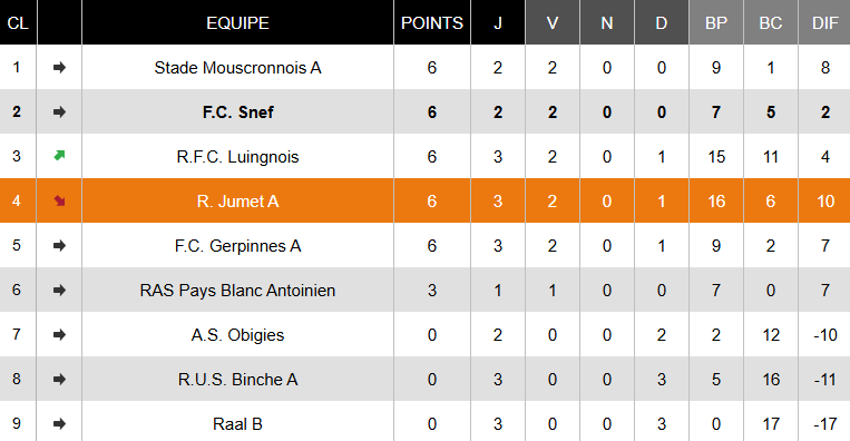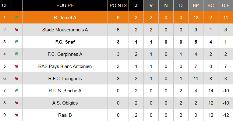 La reprise du championnat ce dimanche à Houdeng sans Ethan blessé pour plusieurs semaines et Noumou suspendu pour trois cartons jaunes lors du premier tour, troisième carte reçue à Obigies. Cela nous prive de deux défenseurs.