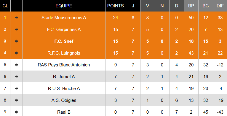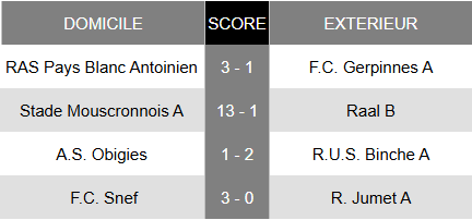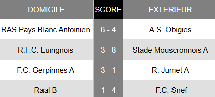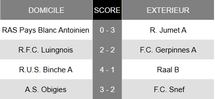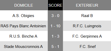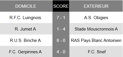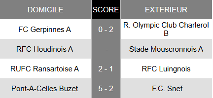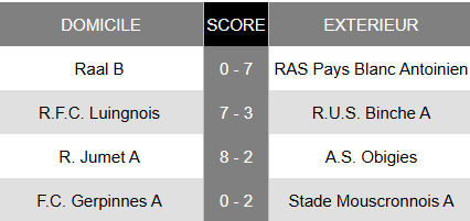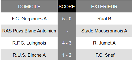 Défaite face à Gerpinnes au mauvais moment, qui nous oblige à prendre les trois points le week-end prochain contre Jumet et espérer terminer quatrième.