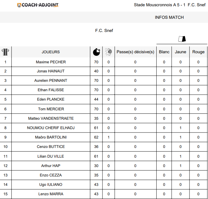 Convocations: Maxime - Tom - Jonas - Aurelien - Lenzo - Matteo - Ethan - Noumou - Lilian - Ugo - Eden - Maôro - Arthur - Cenzo - Enzo