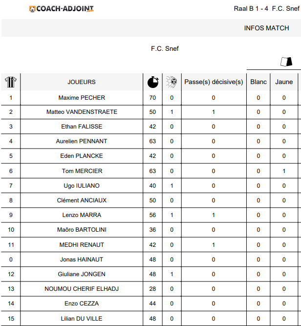 Convocations équipe B: Arthur - Giuliane, match à 11h00, rendez-vous 9h45.