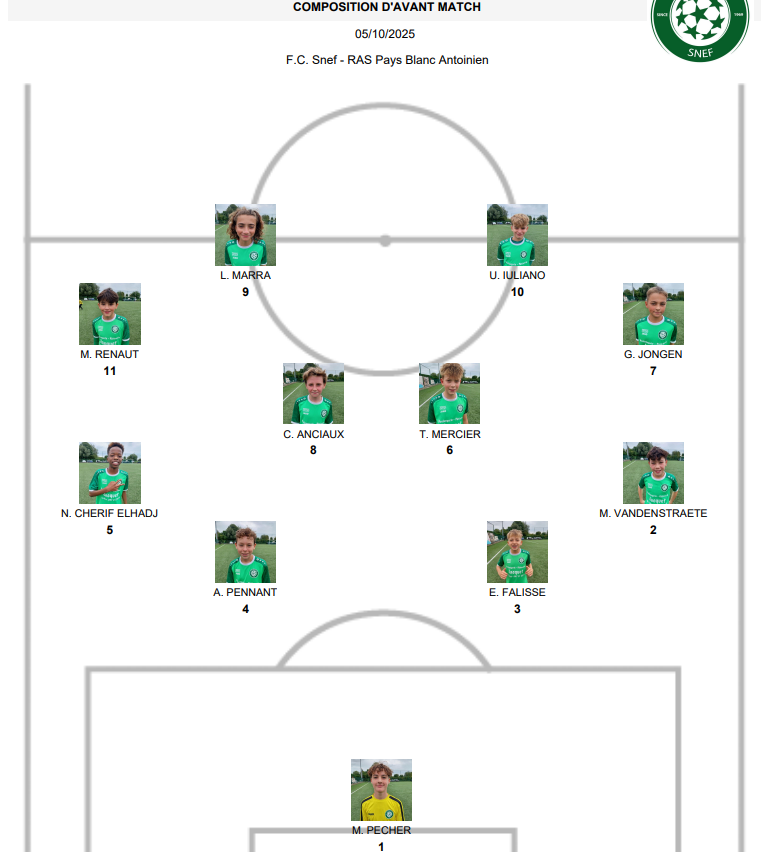 Convocations : Maxime - Giuliane - Eden - Ethan - Jonas - Noumou - Aurelien - Clément - Enzo - Lilian - Tom - Lenzo - Maôro - Matteo - Medhi - Ugo