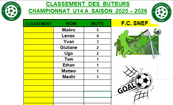 Convocations : Maxime - Guiliane - Eden - Ethan - Noumou - Aurelien - Clément - Lilian - Tom - Cenzo - Lenzo - Maôro Matteo - Medhi - Ugo