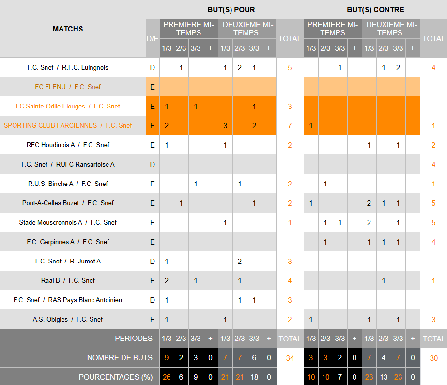 Voici le tableau récapitulatif des buts marqués et encaissés.