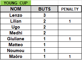 Pénalty: Liyam - Maxime - Nathan - Lorenzo - Liyam